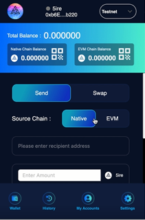 通过 5ire 钱包扩展发送加密货币非常简单。只需输入收件人的地址、您要发送的金额,然后选择交易费用。然后,通过点击发送按钮,您的交易将被处理。