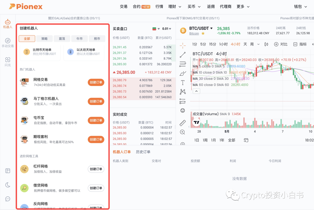 派网的机器人功能远比上述的例子来得更加丰富、实用,以下为它们目前提供的一些自动交易机器人类型: