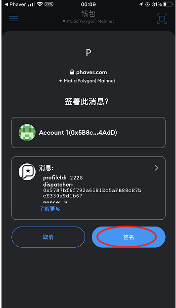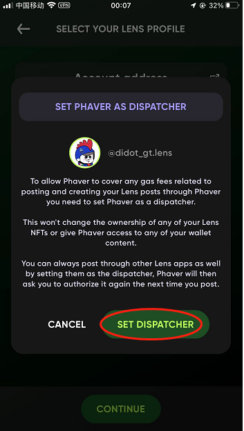 11,然后选中我们的头像并点击继续,继续点击设置为调度程序。然后跳转到metamask上面签名。