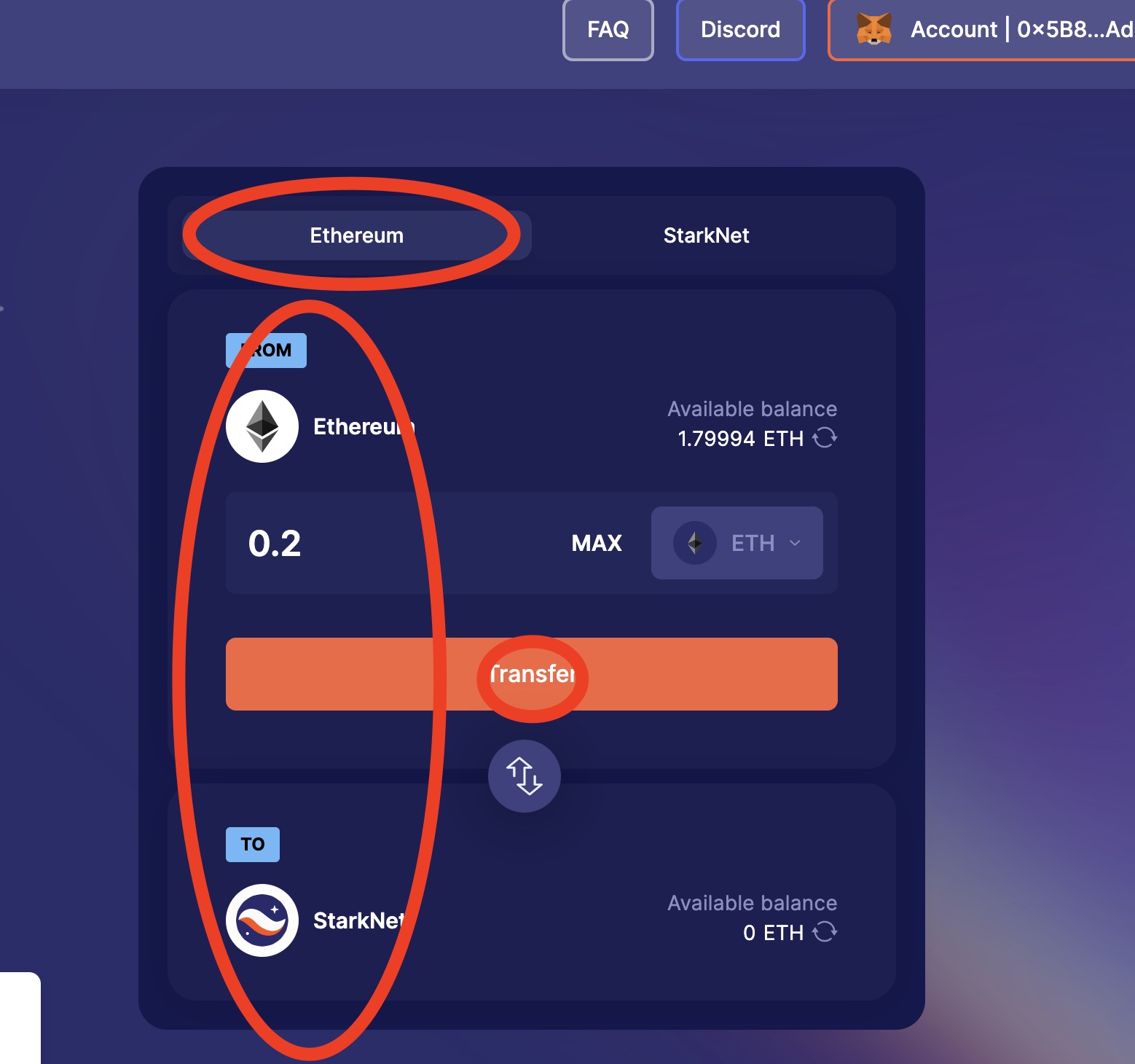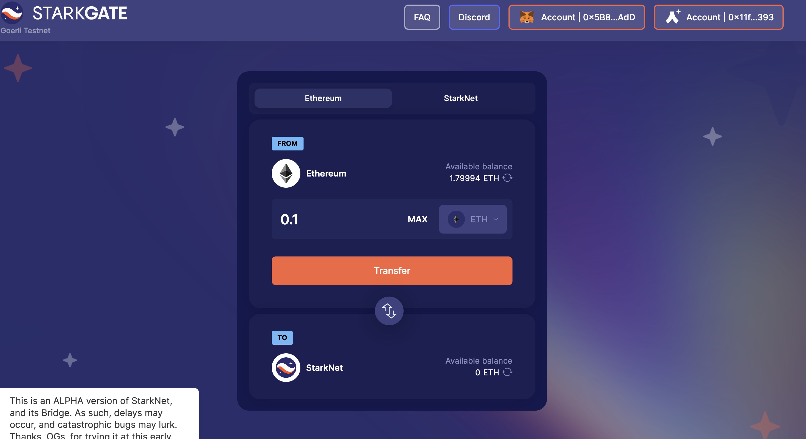 3,打开测试网地址,并连接metamask和Argent X StarkNet Wallet。