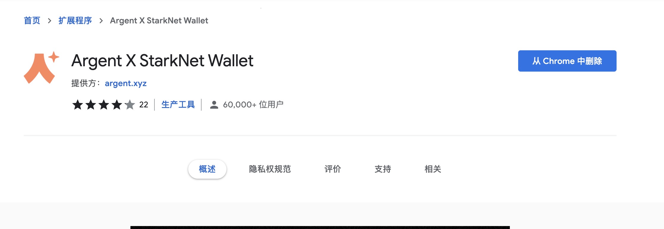 1,打开谷歌浏览器扩展程序应用搜索Argent X StarkNet Wallet和metamask钱包并添加至chrome中。并全部创建钱包。