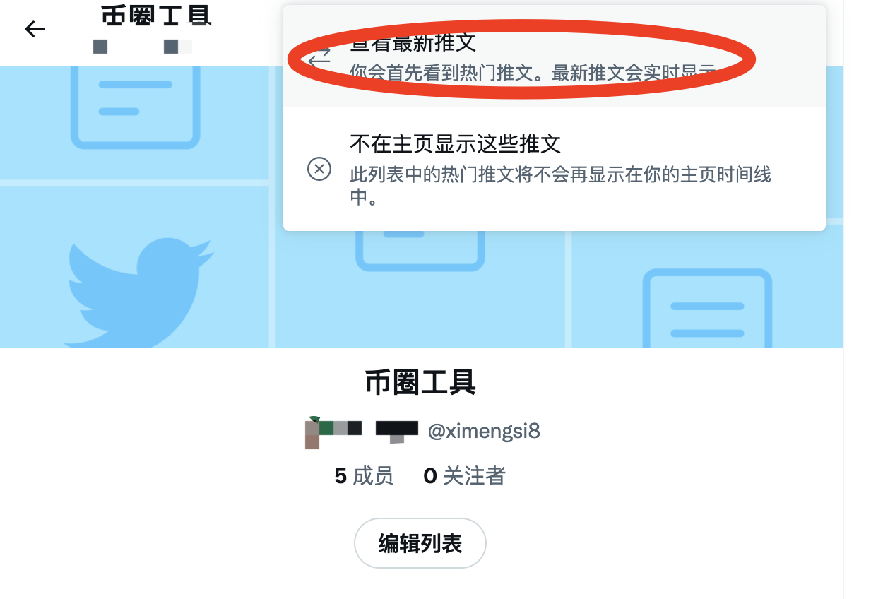 9,添加以后我们需要在列表中 设置一下(查看最新推文),这样你就不会错过任何一条推文了。