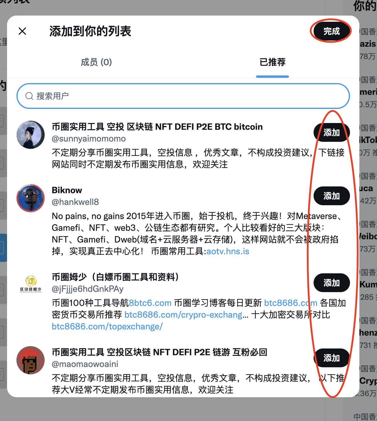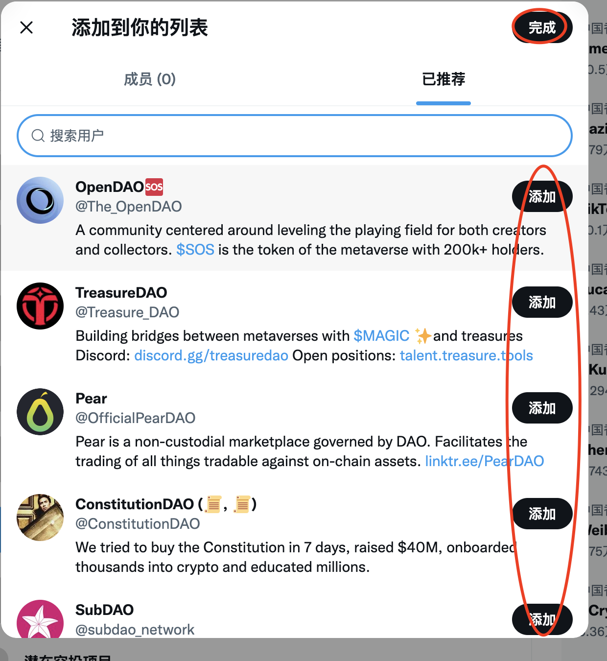 4,比如 #DAO 列表也是一大堆推荐,可以随手添加,也可以自己进行筛选再添加