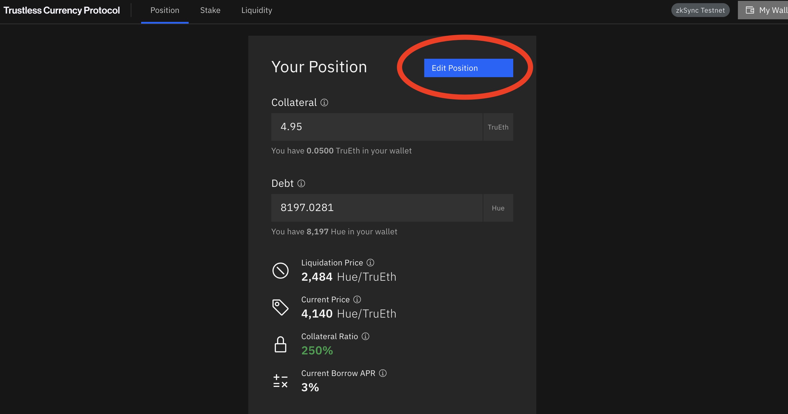 4,如果你想更改抵押数量也可以继续返回到位置页面,点击编辑职位,然后改变数量即可。