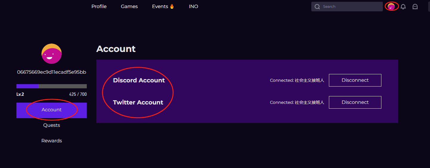 点击查看一下自己的账户,twitter和discord需要全部链接。
