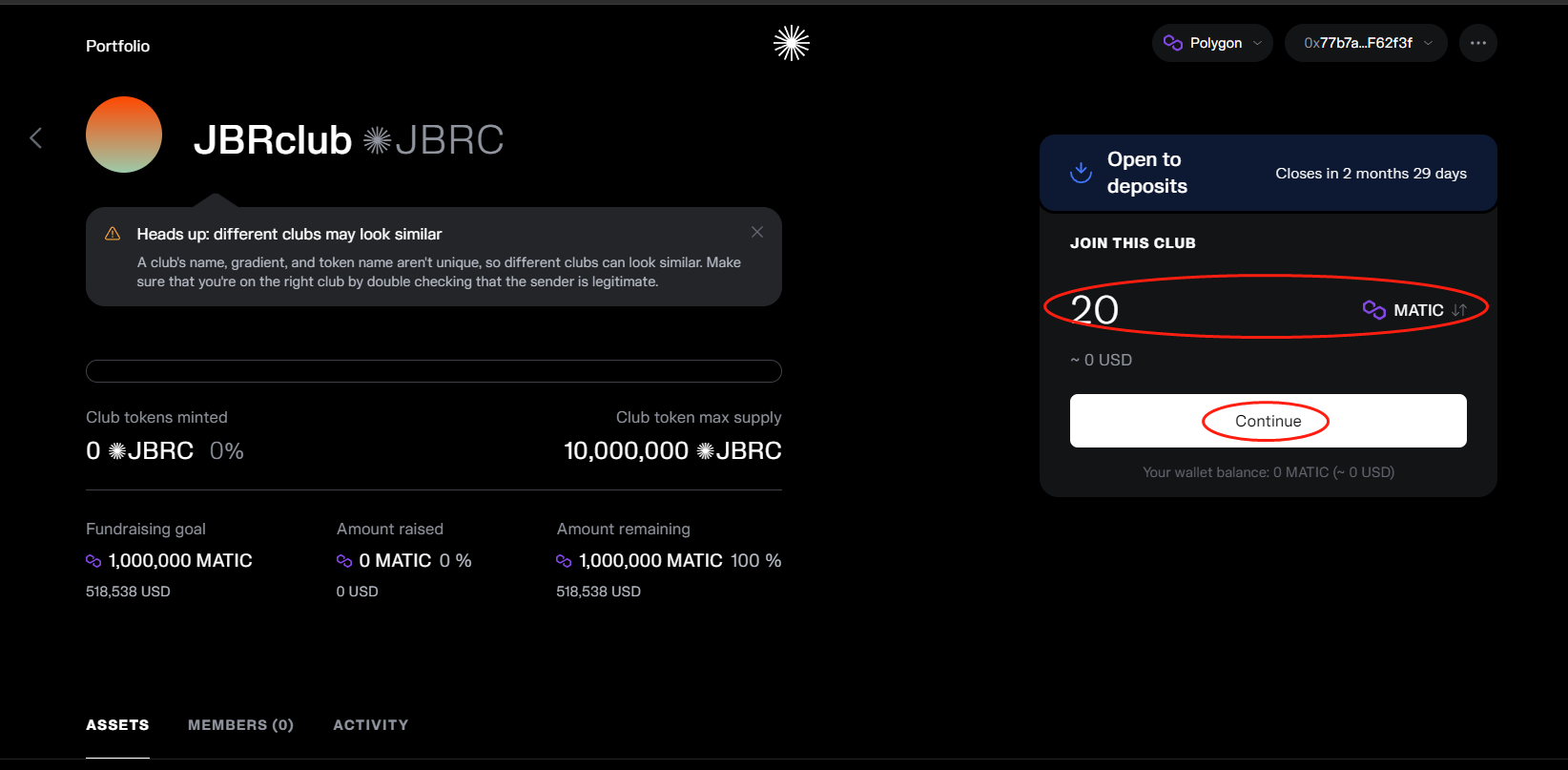 1,打开Syndicate ✺地址并链接metamask钱包,切换到MATIC主网,并存入10美金等值以上的代币。
