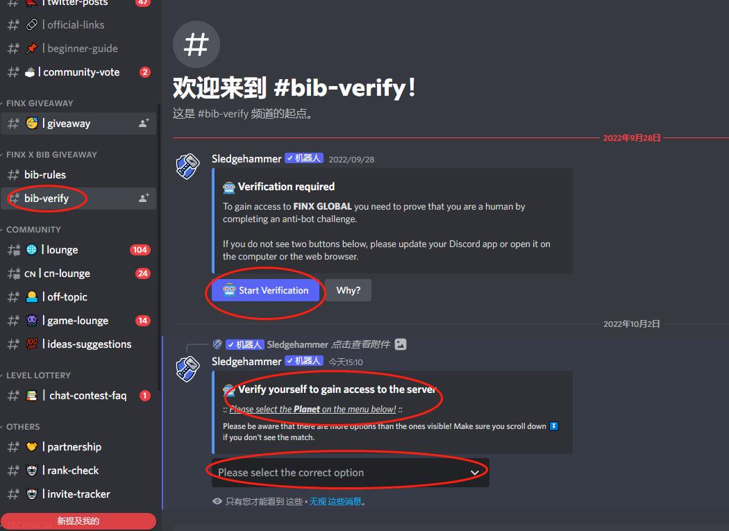2,加入FTNX的discord,在#bib-verify 上进行验证并在#bib-submission 频道中提交您的 UID 详细信息。(需要先通过机器人验证)(并且成功以后会多出来一个频道,目前显示您已被验证,由于当前此服务器中请求验证的用户流量很大,可能需要一段时间才能获得您的角色,请耐心等待!过等待时期再填写UID信息)