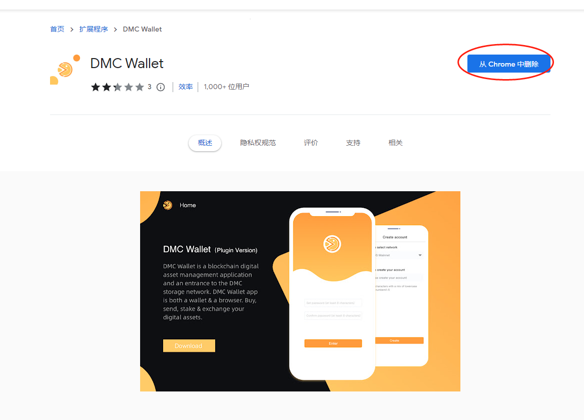 1,谷歌扩展程序将dmc钱包添加至chrome。