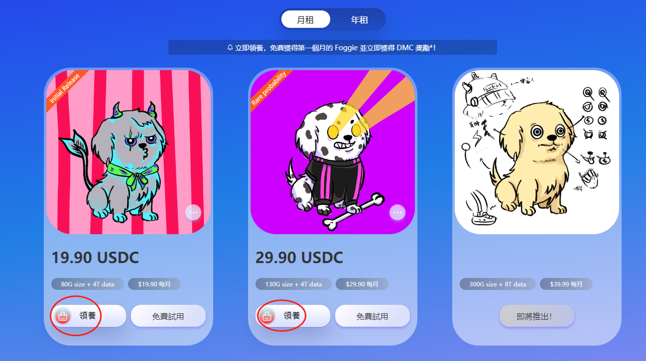 目前官方推出19.9U和29.9U的NFT。用户存储数据和分享数据就可以挖矿。存满50G和100G数据。当天可以拿到12.5个DMC。然后每天可以拿到0.5-1DMC,分享可以拿到1DMC/T的数据流量奖。相当于19.9U一个月挖出30-60DMC。29.9一个月可以挖出40-100DMC。