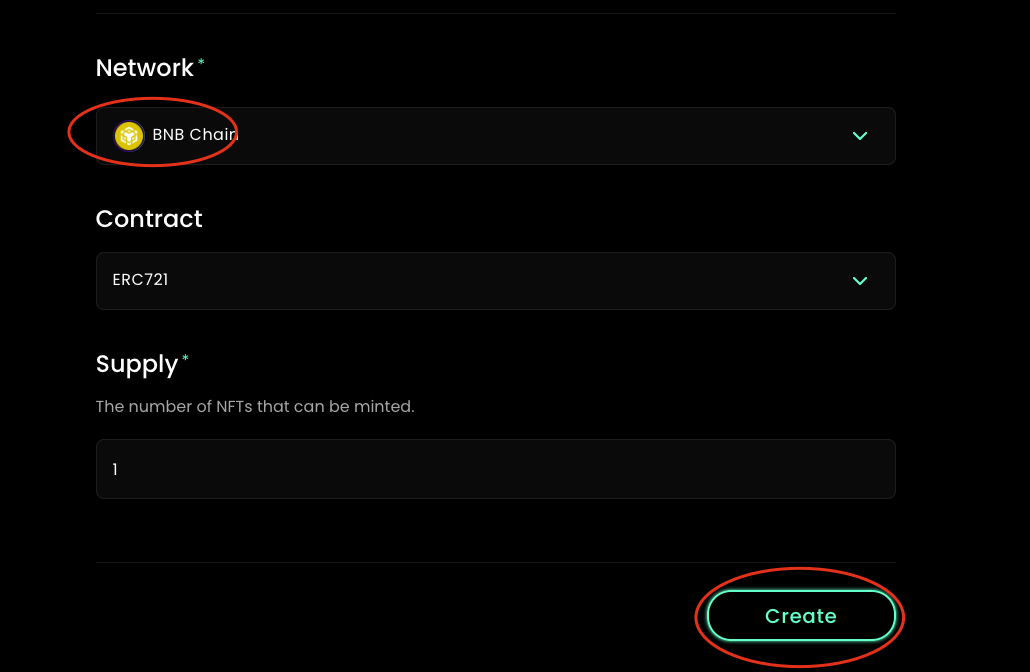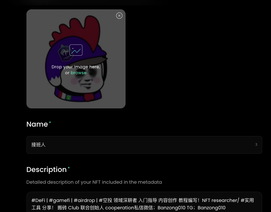 2,上传头像输入名称和简介,选择BSC主网并确认。