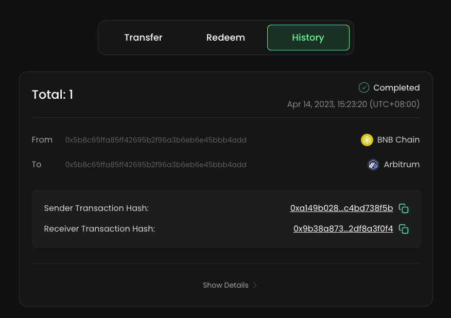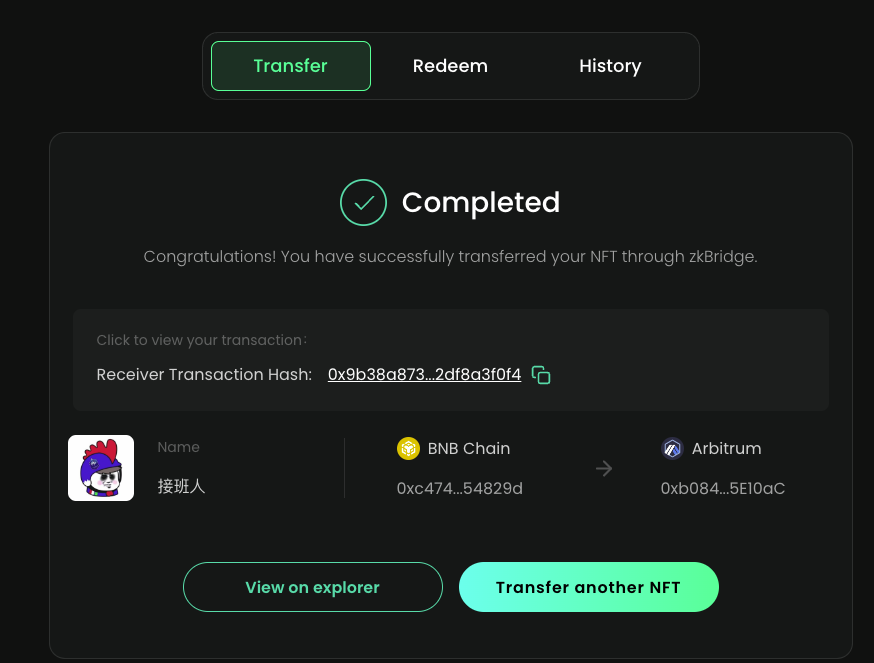 6,继续在ARB主网宣称,ok转移成功。在历史中可以看见记录。