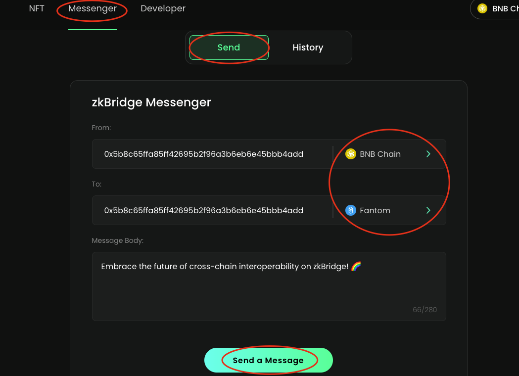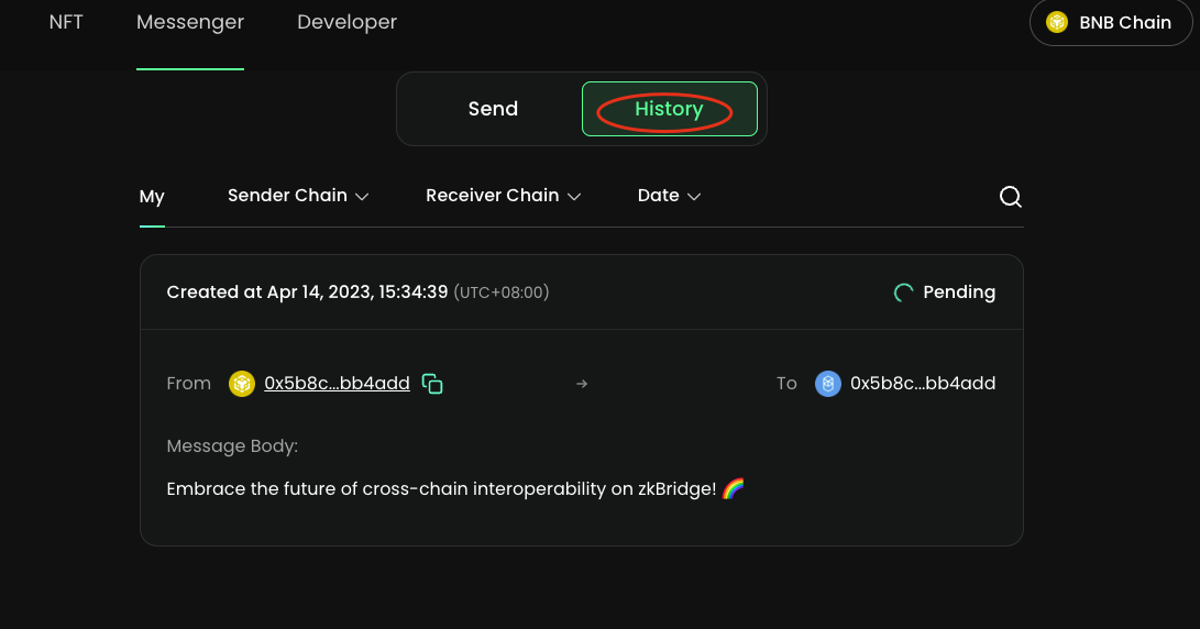 7,继续点击信使,发送,发送一个消息。在历史中可以查看你发送的消息。