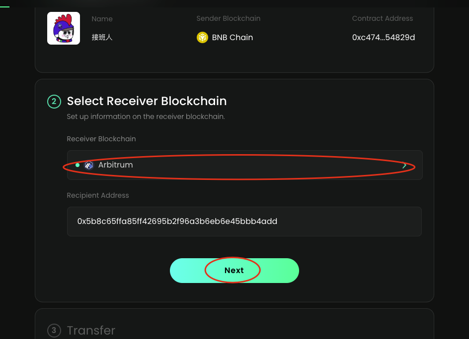 5,选择ARB主网并继续下一步,批准并转移然后等待。