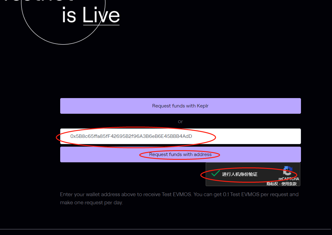 2,打开水龙头地址并输入钱包地址领取测试代币。