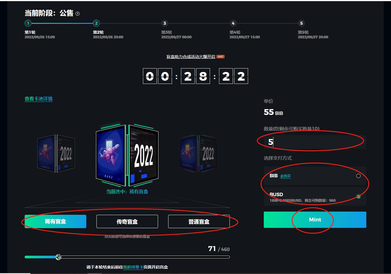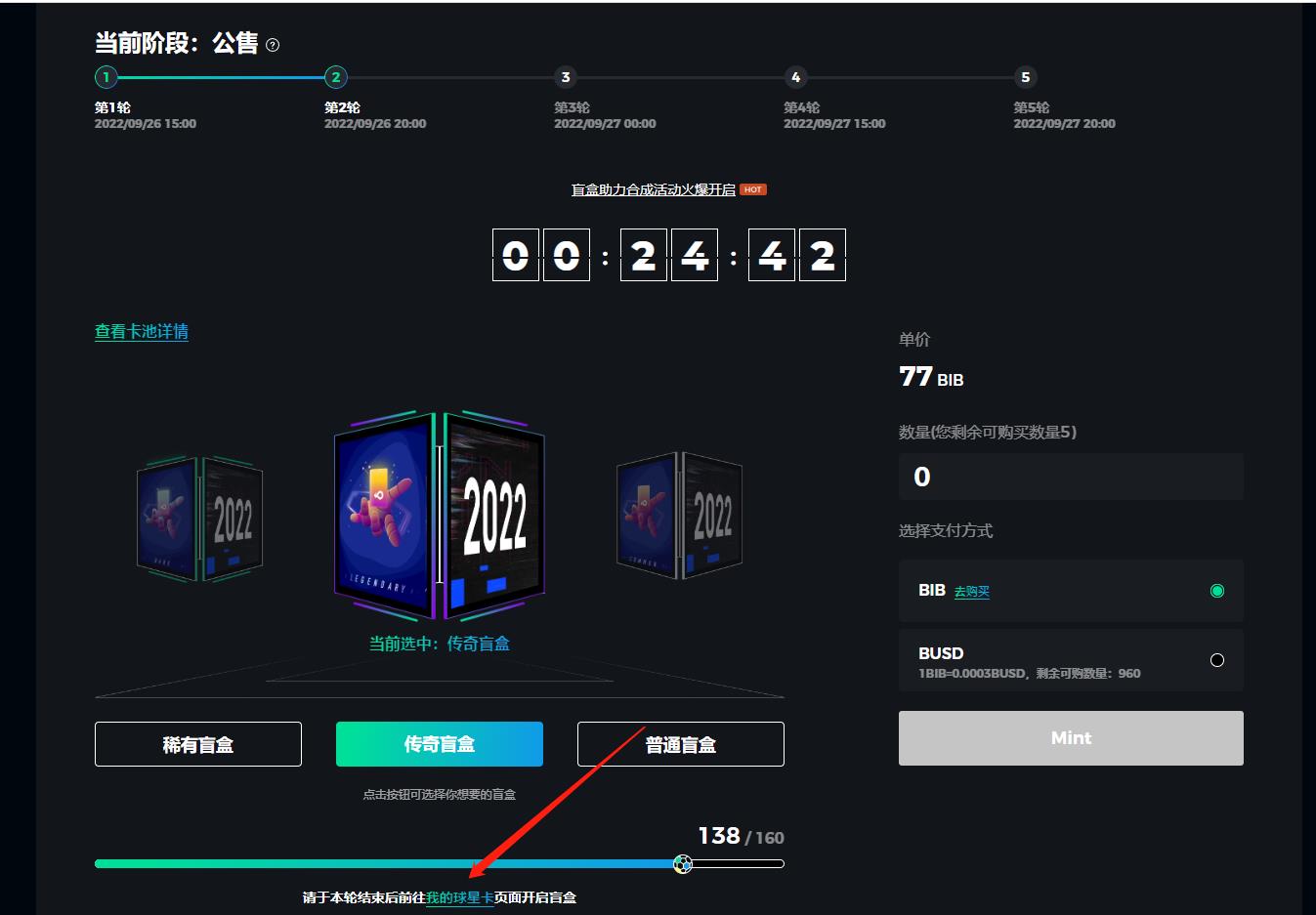3,点击星球卡,星球卡发售,并mint星球卡,张数不限,普通稀有传奇随便,选择好代币进行mint然后进行钱包确认。