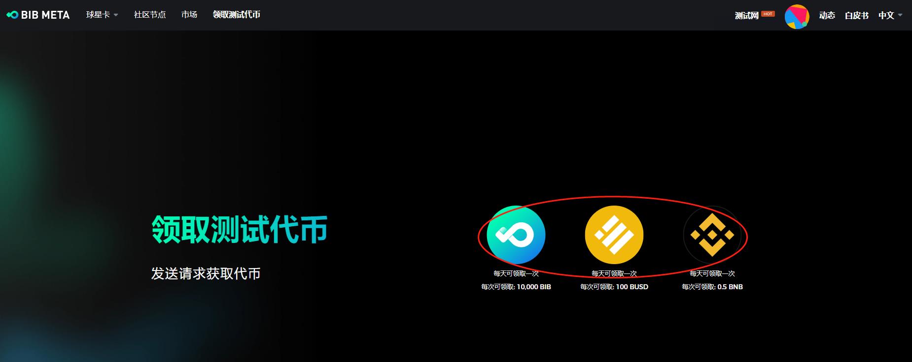 2,领取测试代币。(需要先领取BNB再领取BUSD和BIB)