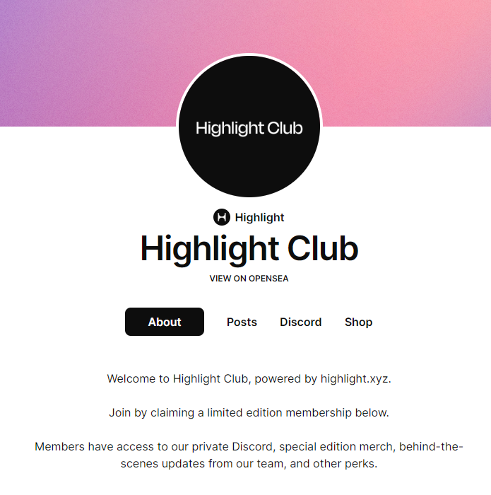 项目简介;Highlight 提供无代码工具和基础设施,帮助创作者和艺术家设计和铸造 NFT,在 Web3 中建立自定义品牌的会员社区,并帮助创作者与其最忠实的粉丝建立联系。Highlight 不仅从根本上简化了 NFT 铸造和销售流程,还为长期粉丝参与和大规模社区建设提供创作者工具、服务和集成。