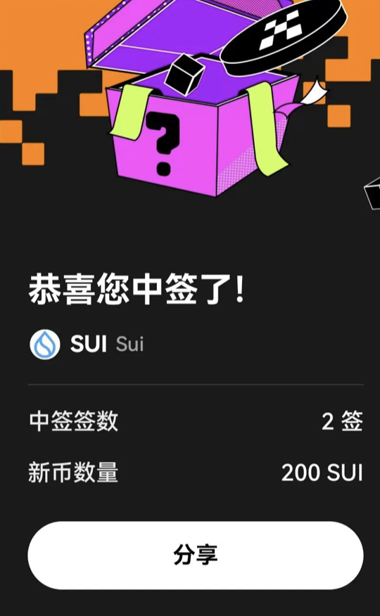 OKX的Sui打新开奖了,一些小伙伴已经中奖了,这次中签还挺简单的,中一签至少可以挣100U。