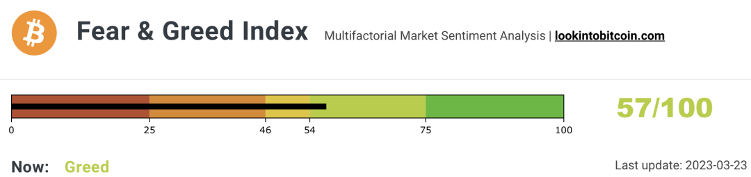 链上数据同样不是很乐观,贪婪恐慌指数已经到了57。