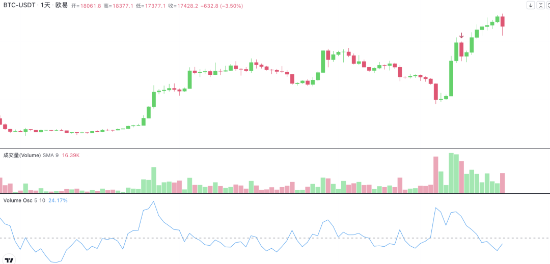 目前币价在27600左右,相对强弱指数RSI为66,目前还是处在超买的状态。