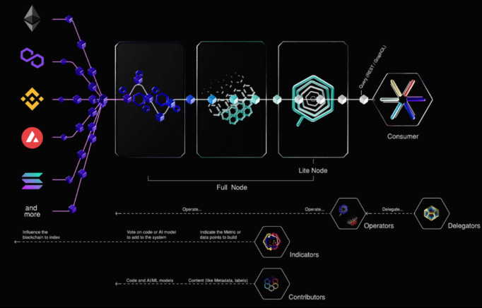 下图展示了 BitsCrunch 网络的历程,从索引到查询,展示了网络中的各种角色: