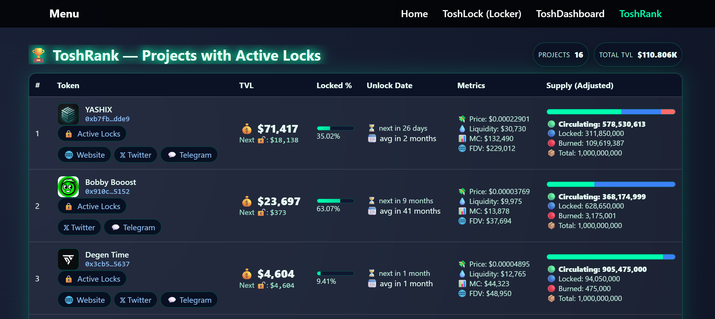 Pepu’s mission is to give communities the tools to act with confidence. ToshLock proved that builders are ready to lock liquidity transparently. ToshScore makes token quality glanceable and comparable. ToshBoard will tie it all together into a fast, clean interface for discovery.