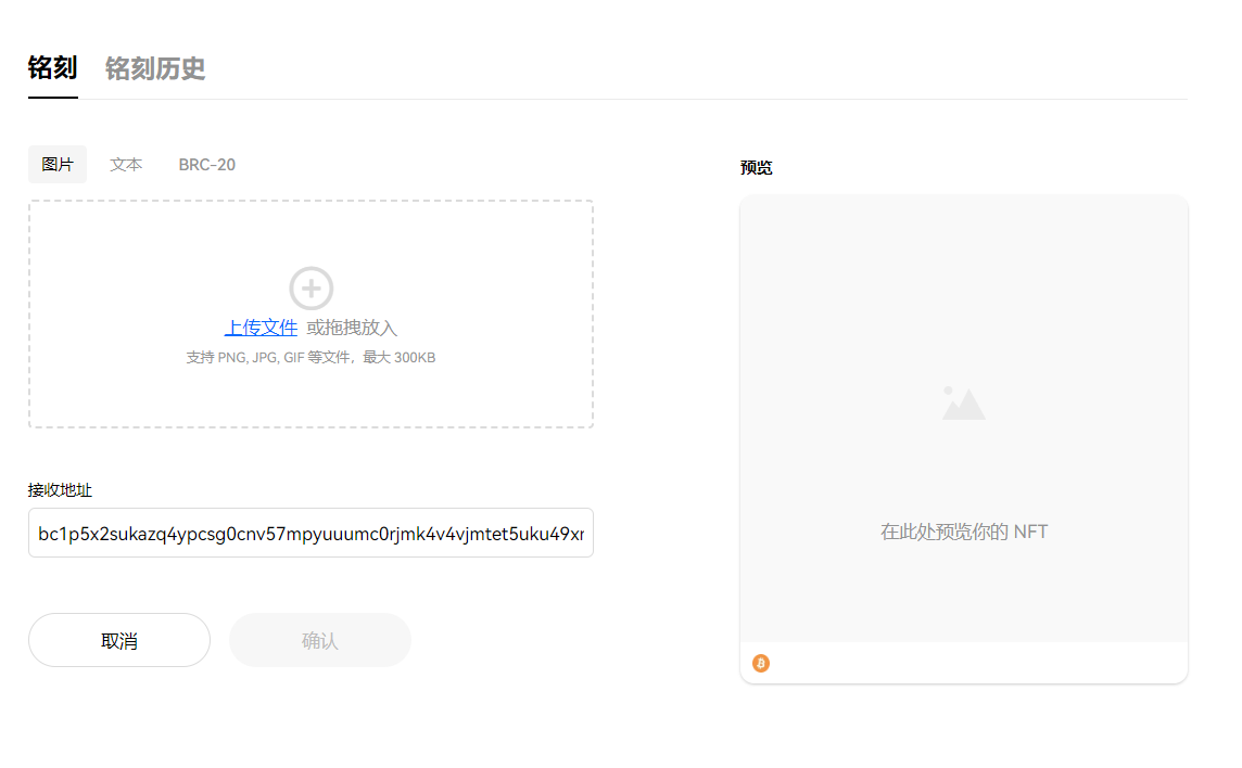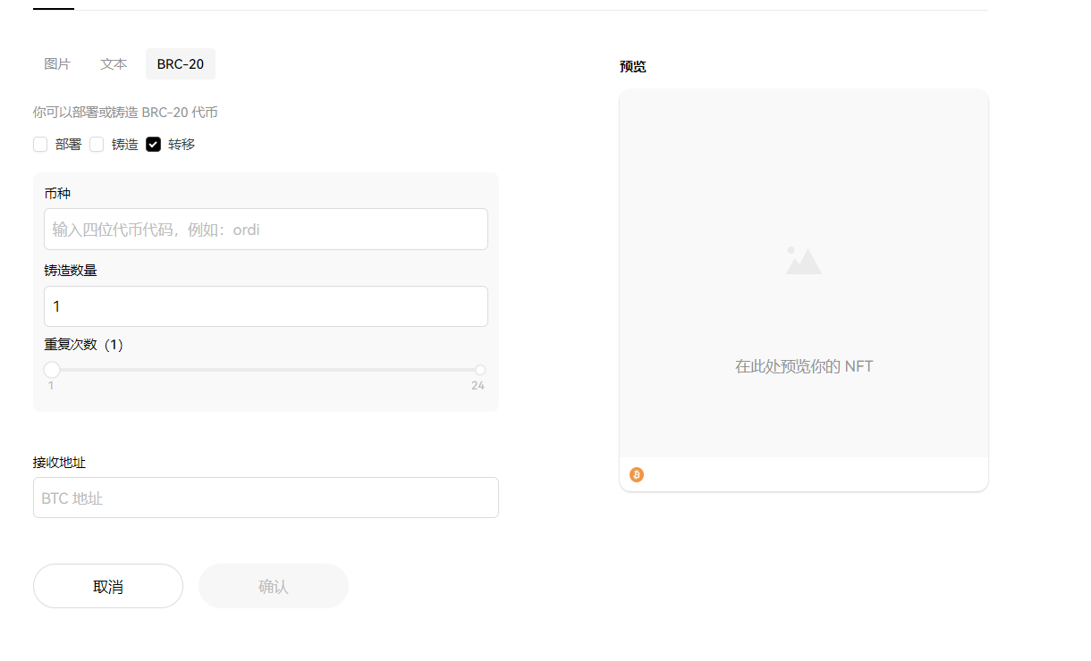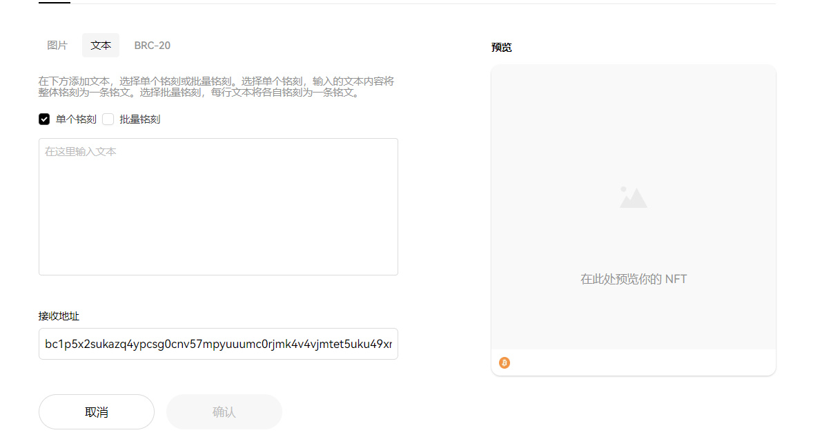 brc接受地址可以选择连接钱包的地址或者任意其他的地址