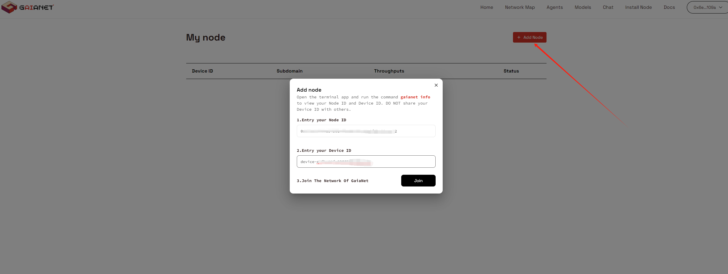 复制 最后的NODE 和DEVICE ID 到网站添加节点