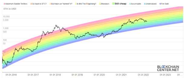 以太坊彩虹帶從“山寨季”區域回落至"便宜”區域。