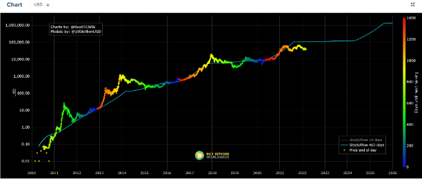 根據該模型,BTC當前預估價格應該在10萬美元上方,目前實際價格約37800美元,偏離較大。若該模型有效,價格處於嚴重低估狀態。