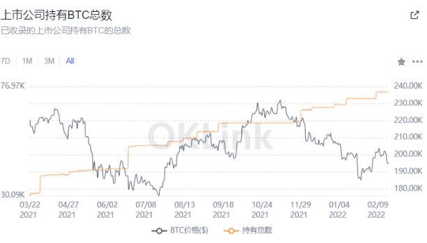 儘管BTC價格遠低於歷史高位,但上市公司持有的BTC總數比5月份增加了4萬枚。