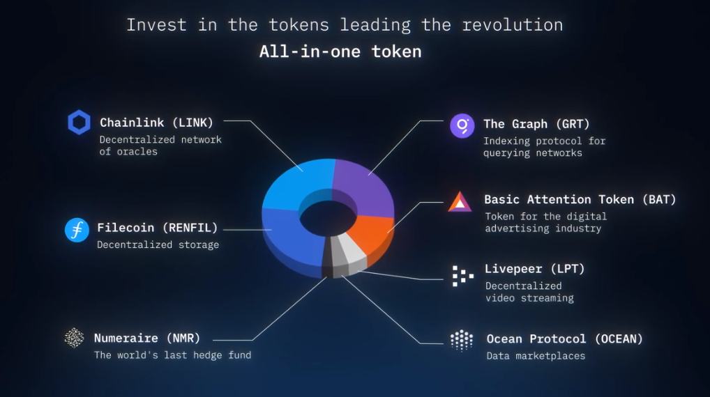 數據經濟是基於數據的產品和服務的數字生態系統,包括數據存儲、計算資源、數據市場以及自主代理等。在web2中,它們通常以FAANG和NASDAQ為代表;在加密貨幣中,它們以DATA代表,即去中心化數據經濟代幣ETF投資組合(如上圖所示)。