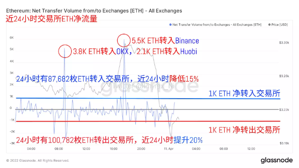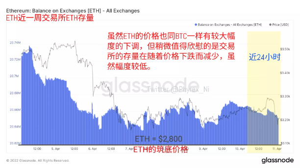 今天上午看到ETH的數據相對BTC來說雖然價格走勢上是一樣的,但稍微好些的地方是交易所的存量好歹隨著價格的下跌是呈現出下降的趨勢,雖然減持的較少,但是也能說明是有存量的ETH被提離交易所。而且從交易所淨流量可以看到,最近24小時內雖然有三筆較大規模的轉入,但是轉出提現也在提升。