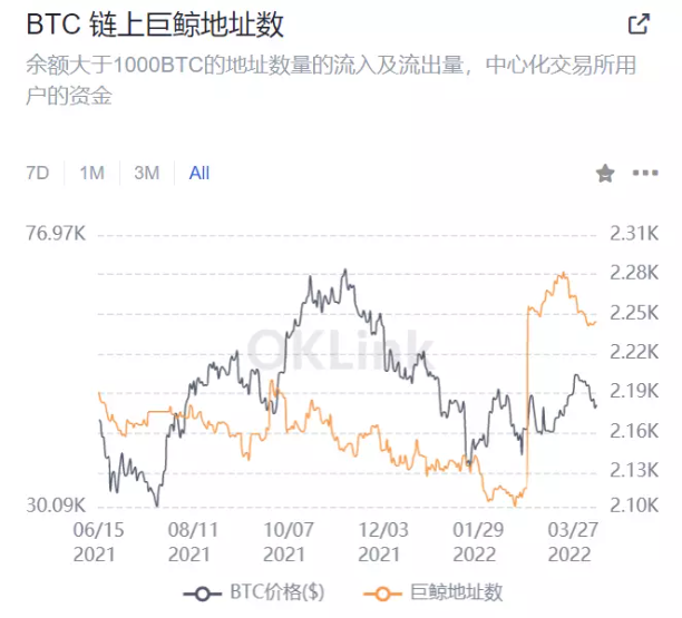 近期,巨鯨數量近期從2100飆升至2280之後,回落至2244。