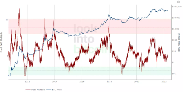 該指標認為,當一輪牛市到最後市場情緒狂熱,泡沫嚴重,短期幣價漲幅超過新人新資金入場速度時,牛市的泡沫就會破掉,熊市就會開始。