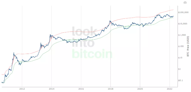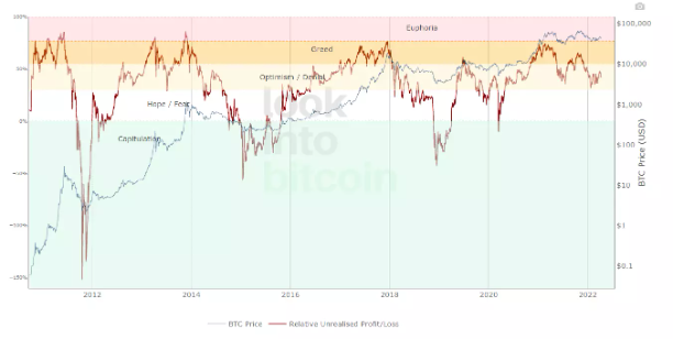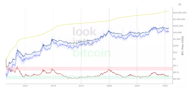 在信心高而價格低時(綠色區域)投資比特幣具有較高的風險回報;反之,在信心低而價格高時(紅色區域)投資比特幣將產生虧損。