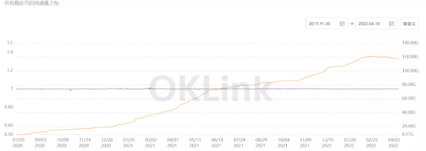 2021年6月份-7月底,穩定幣市值增速減緩,8月份開始上升,目前在高位震蕩之後略有降低。