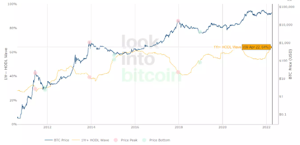 在2013年和2017年的兩次牛市見頂時,該指標分別是237%、134%。本輪牛市,比特幣漲至4.7萬美元的時候,該指標最高達到108%,繼續漲到6.4萬美元的時候,該指標反而降到了34%。目前,該指標為0.42%。
