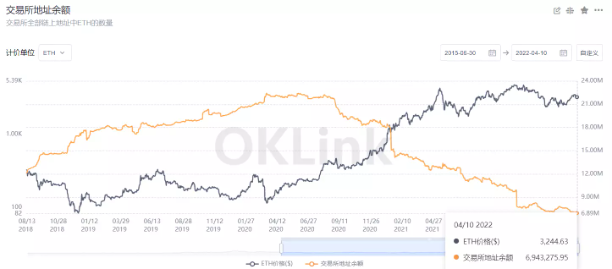 近一個月來,ETH交易所餘額從800萬枚下降到689萬枚。近期小幅上升至694萬枚。