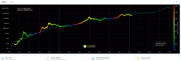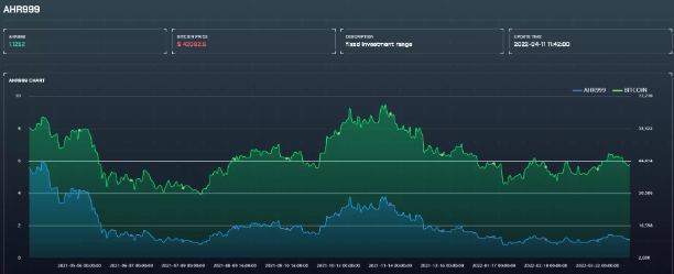 該指數用於評估比特幣價格的高低,判斷合適的購買時機。數值<0.45為抄底區間;0.45-1.2為定投區間;1.2-5為牛市區間;>5為高風險區間。當前數值跌至1.12,處於定投區間。