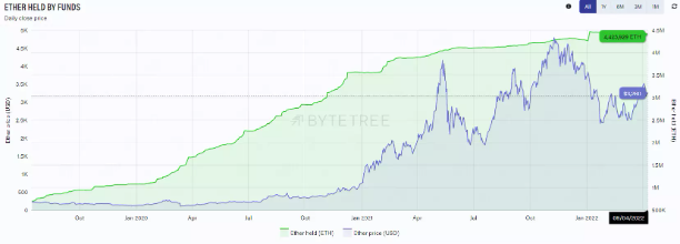 ETH機構持倉從最高點447萬枚降到442萬枚。