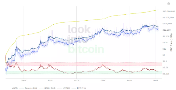 儲備風險指標可以反映長期比特幣持有者在特定時間對於比特幣價格的信心。