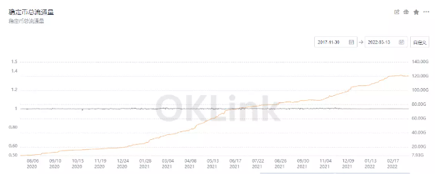 2021年6月份-7月底,穩定幣市值增速減緩,8月份開始上升,目前穩定在高位。