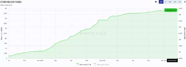 ETH機構持倉從最高點447萬枚降到440萬枚。
