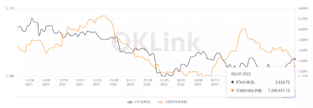 近一個月來,ETH交易所餘額從800萬枚下降到729萬枚。