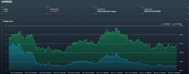 該指數用於評估比特幣價格的高低,判斷合適的購買時機。數值<0.45為抄底區間;0.45-1.2為定投區間;1.2-5為牛市區間;>5為高風險區間。當前數值為1.08,處於定投區間。