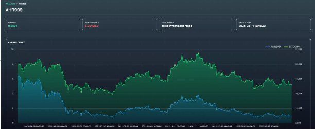 該指數用於評估比特幣價格的高低,判斷合適的購買時機。數值<0.45為抄底區間;0.45-1.2為定投區間;1.2-5為牛市區間;>5為高風險區間。當前數值為0.96,處於定投區間。