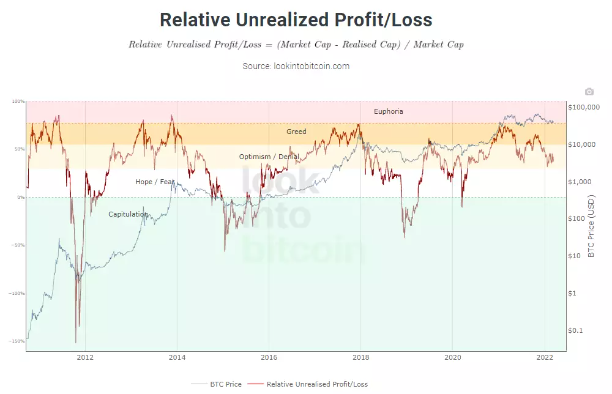 在信心高而價格低時(綠色區域)投資比特幣具有較高的風險回報;反之,在信心低而價格高時(紅色區域)投資比特幣將產生虧損。