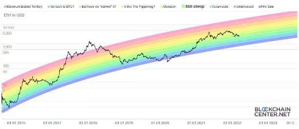 以太坊彩虹帶回落至"便宜”區域。
