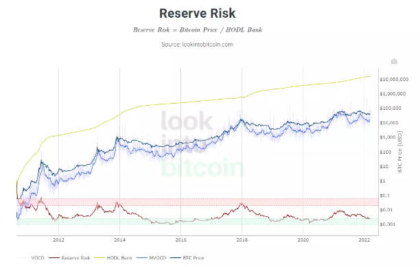 儲備風險指標可以反映長期比特幣持有者在特定時間對於比特幣價格的信心。